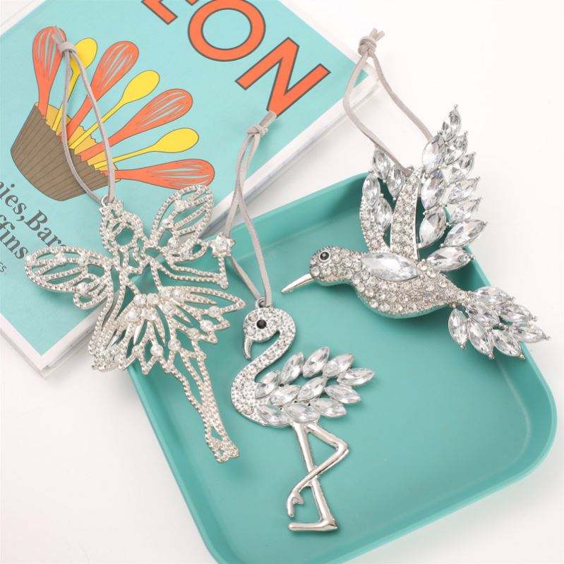 Décoration Suspendue Créative de Noël en Métal avec Strass, Motifs Colibri, Ange, Flamant Rose, pour Vitrine de Centre Commercial et Fournitures de Fêtes
