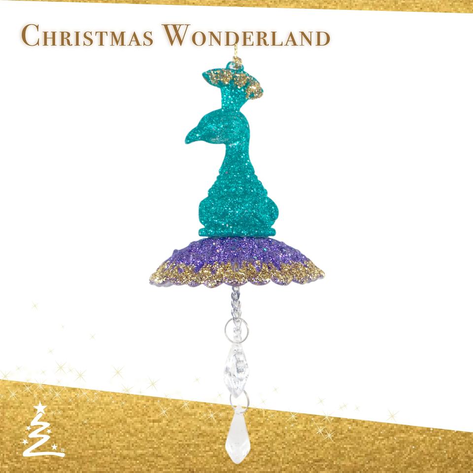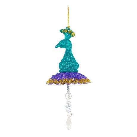 Décoration suspendue créative de noël nouvel an prussien bleu violet or paillettes acrylique 3D tête de paon ornement de gouttelettes