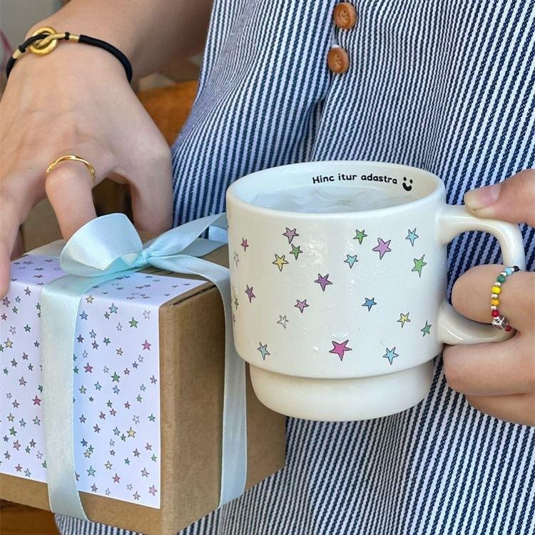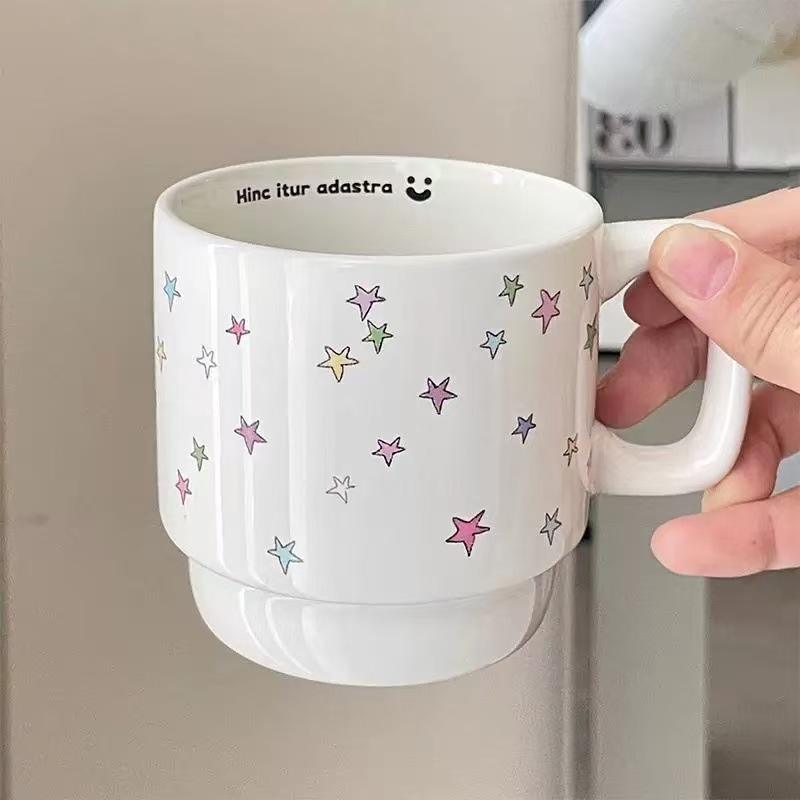 Nom du produit:Tasses à café empilables en céramique personnalisées, motif étoiles colorées et créatives