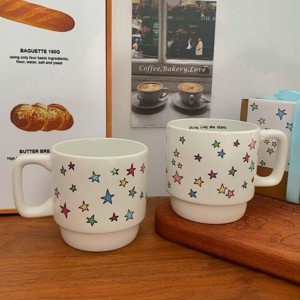 Tasses à café empilables en céramique personnalisées, motif étoiles colorées et créatives