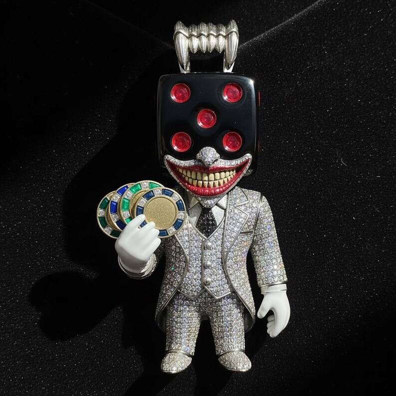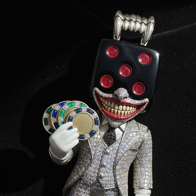 Pendentif pour homme en forme de tête de dé de casino en moissanite