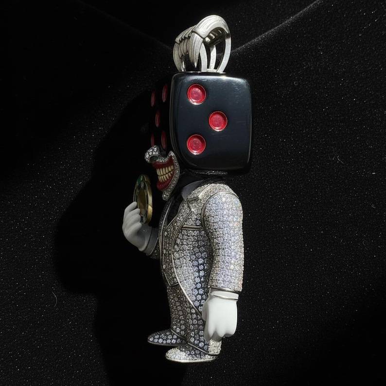 Conception: Pendentif pour homme en forme de tête de dé de casino en moissanite