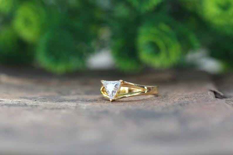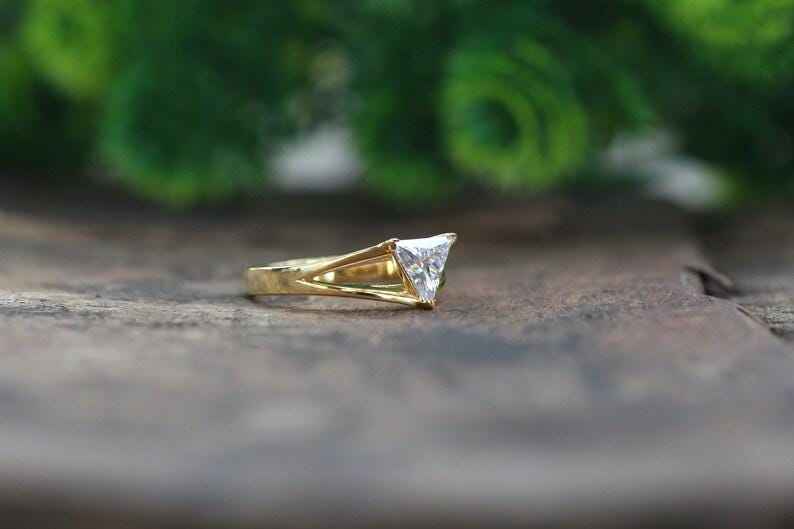 Bague solitaire en moissanite 0,61 carat à taille triangulaire pour femme, en argent 925 original, cadeau premium pour amies