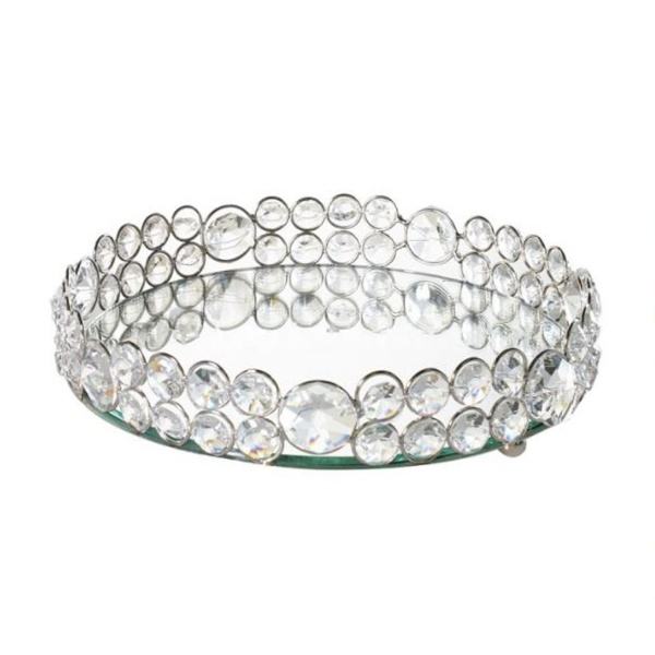 Plateau de service en miroir orné de perles de cristal créatives, qualité supérieure, fait main, forme ovale, vente en gros, nouveau plateau de luxe fantaisie