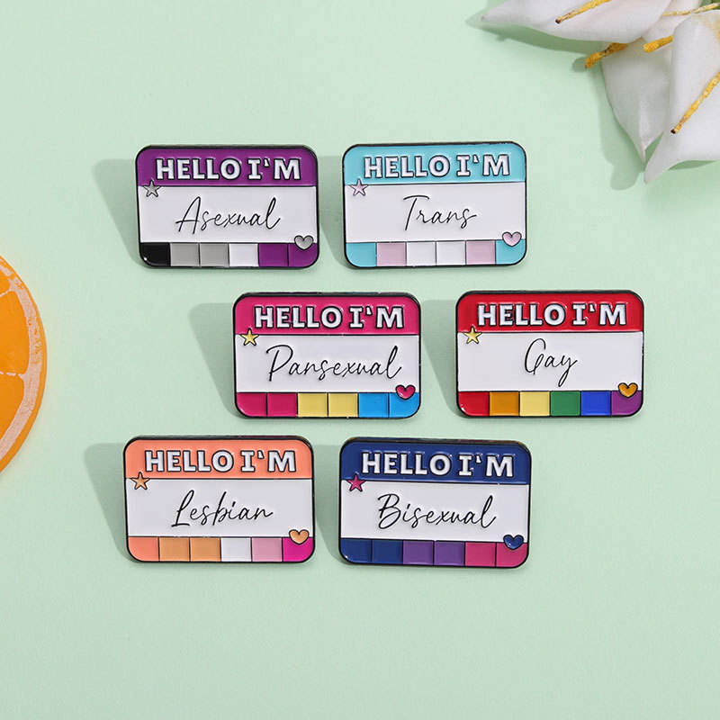 Plaque signalétique personnalisée créative Hello I'm Lapel Pin Boîte de dialogue Badge en métal Lettres anglaises Épingles en émail doux avec des mots inspirants
