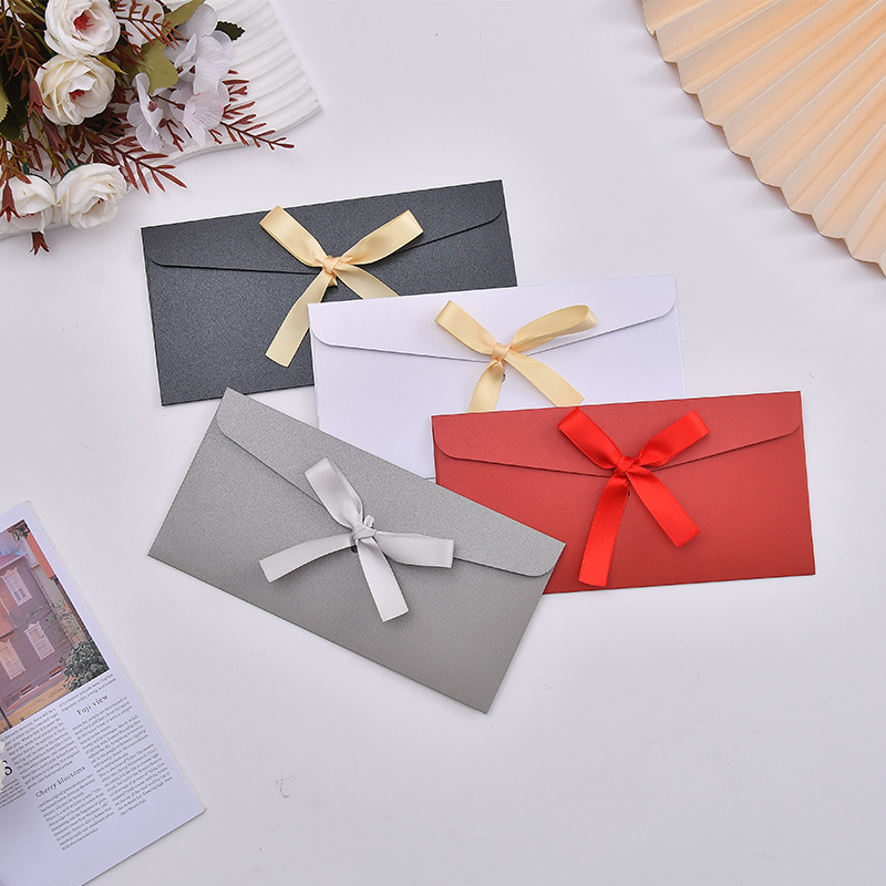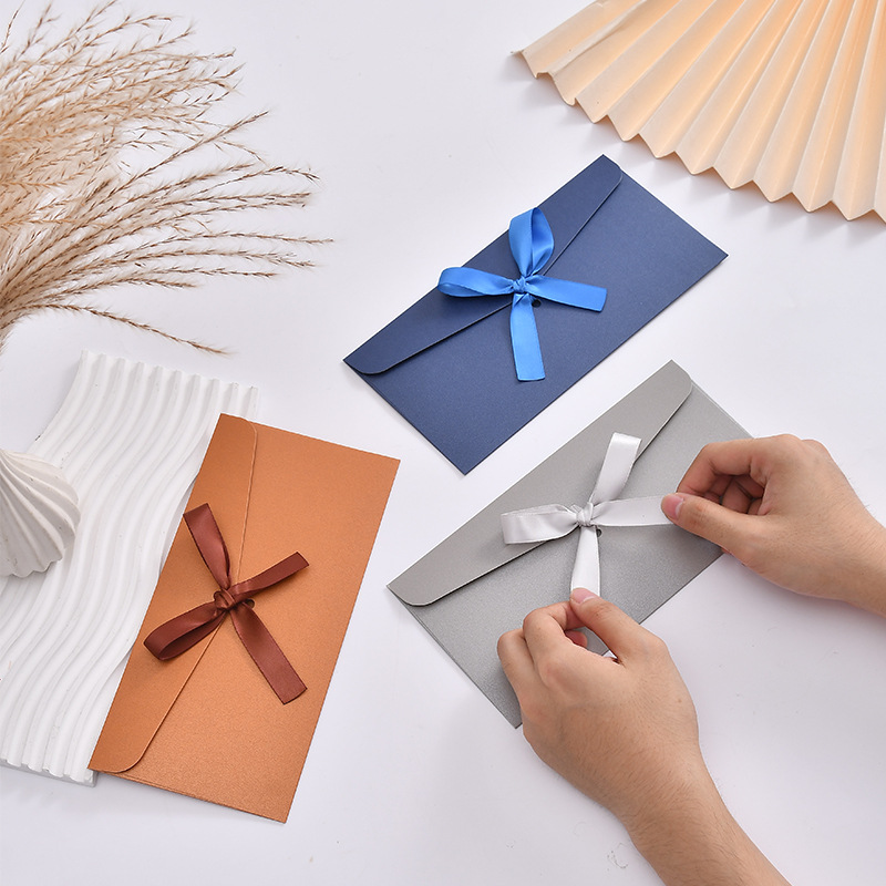 Enveloppe de carte de voeux avec nœud d'impression personnalisée créative ruban de papier perlé pour carte d'invitation d'affaires et emballage