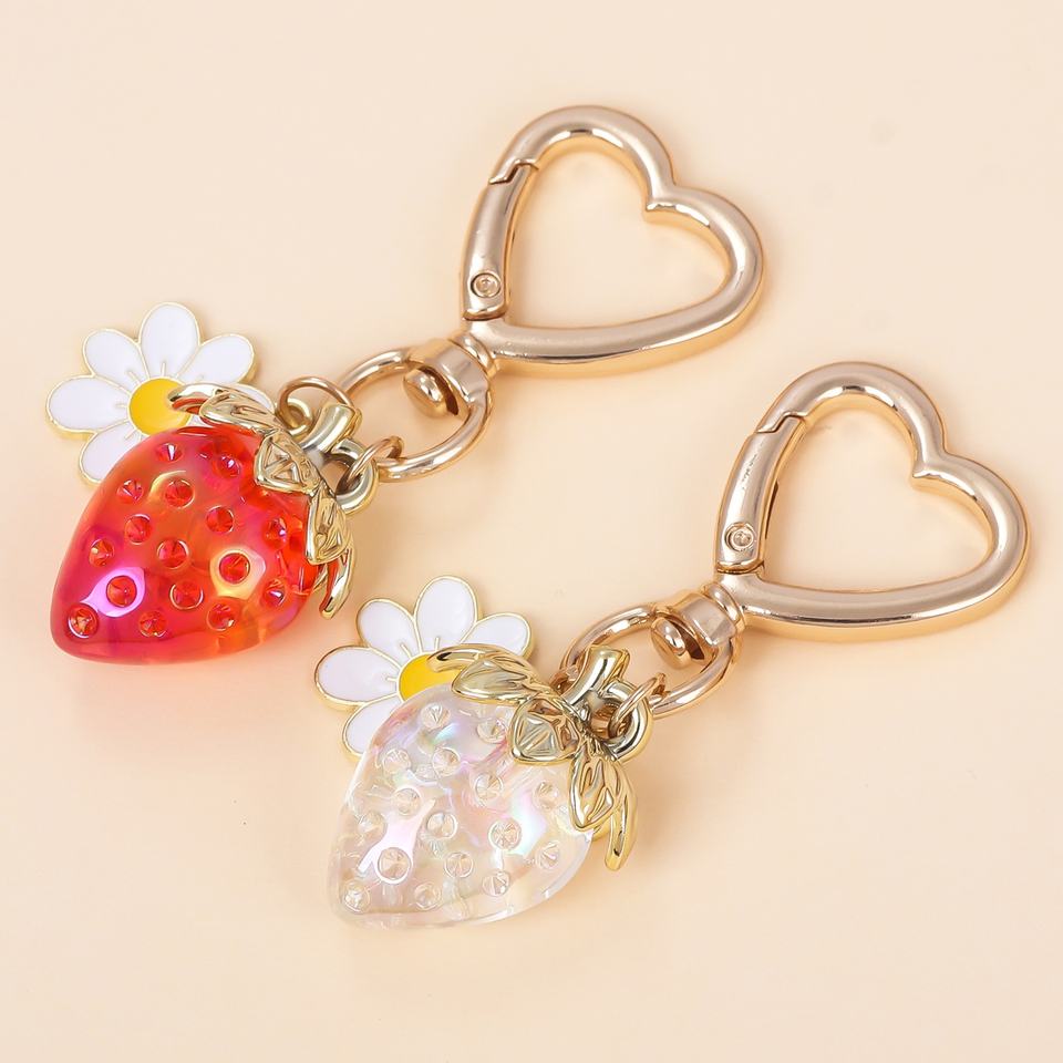 Porte-clés en métal rétro personnalisé créatif, motif fraise et cœur mignon, ornement pour sac ou clé de voiture, cadeau personnalisé