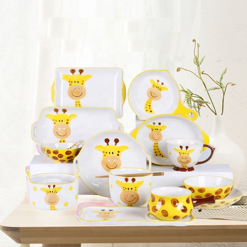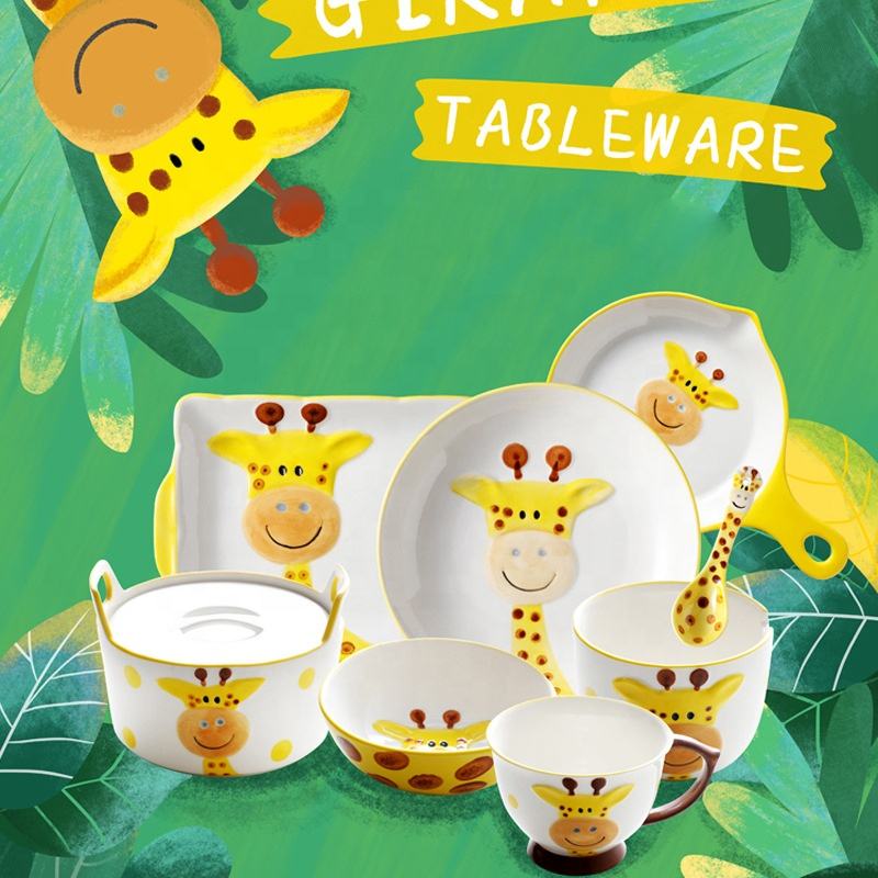Ensemble de vaisselle en céramique pour enfants, ensemble créatif mignon Animal girafe, santé pour enfants, bol assiette cuillère tasse