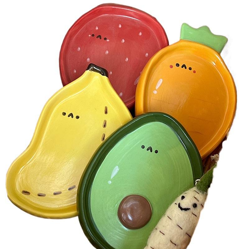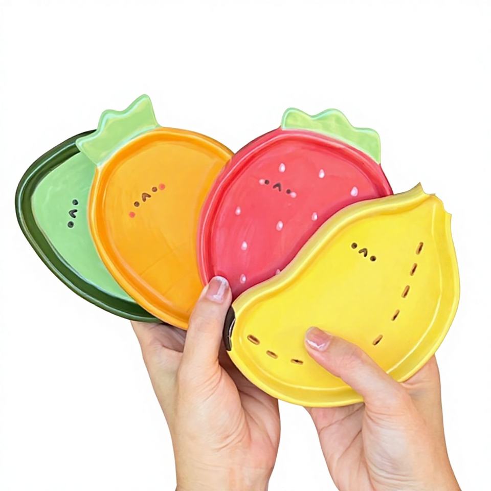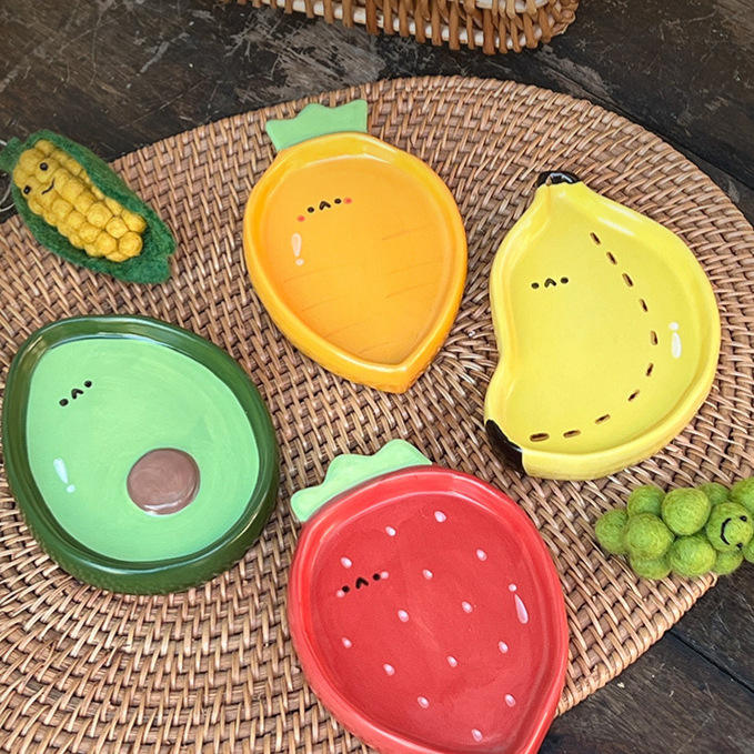 Petite assiette à sauce/aromatisant en céramique en forme de fruit, motif dessin animé créatif et mignon pour enfants, passe au micro-ondes, design adorable, plat à collation émaillé