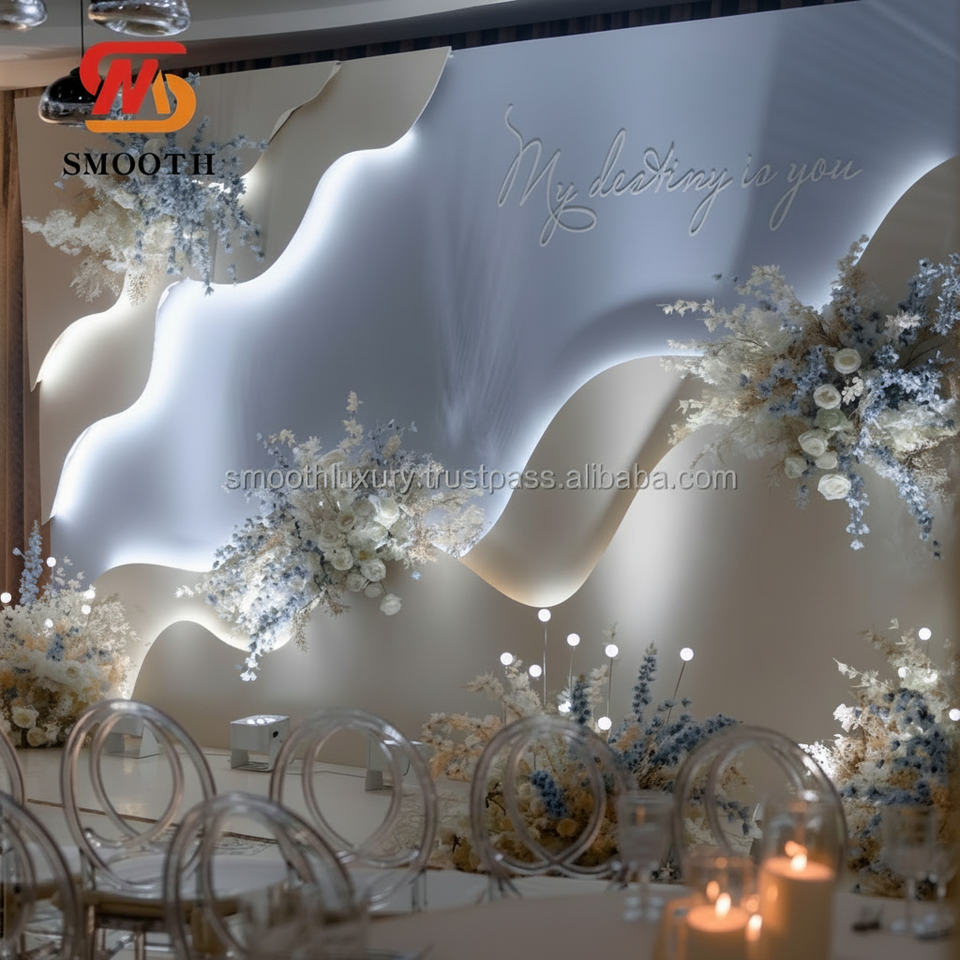 Arche de mariage en PVC, fond incurvé à LED blanc ondulé pour mariage