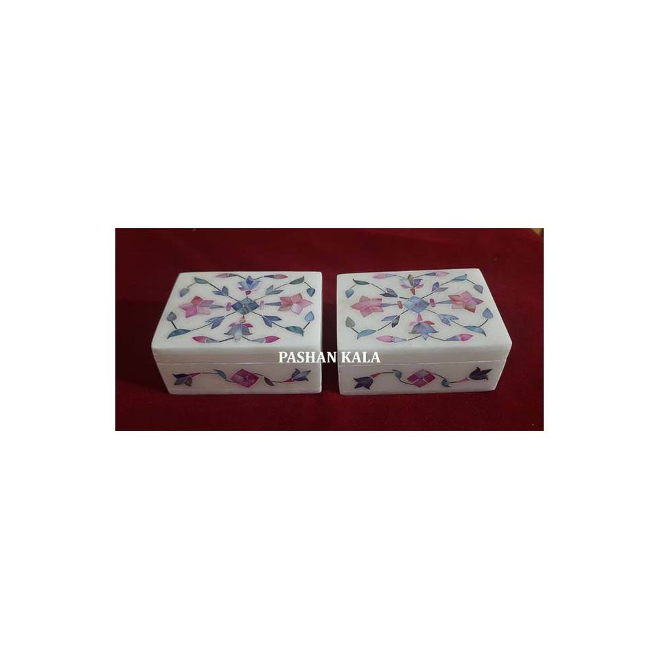 Boîte d'incrustation faite à la main en marbre blanc de nacre de qualité supérieure pour le stockage de bijoux et autres utilisations