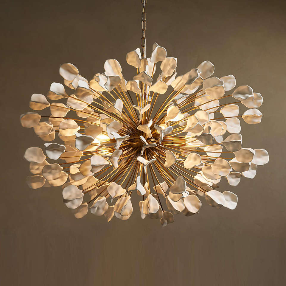 Lustre en céramique noire au design créatif pour salle de banquet, salon, décoration intérieure, lustre moderne de luxe en pétales de céramique