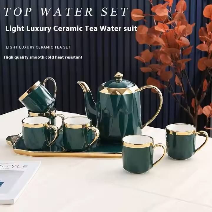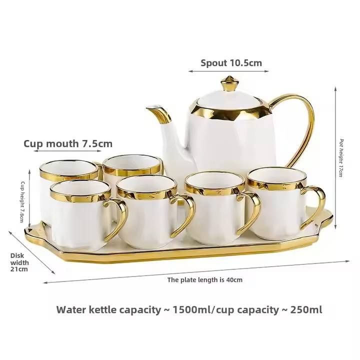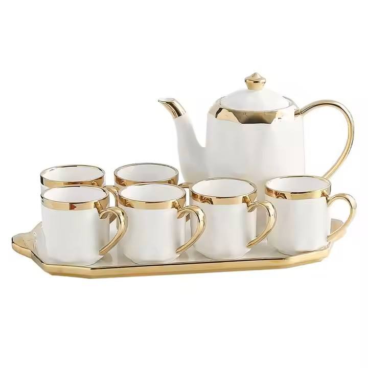 Ensembles de tasses design créatif théière en céramique colorée d'art et ensemble de six tasses avec plateau de service pour coffret cadeau boîtes de couleur cadeau de mariage
