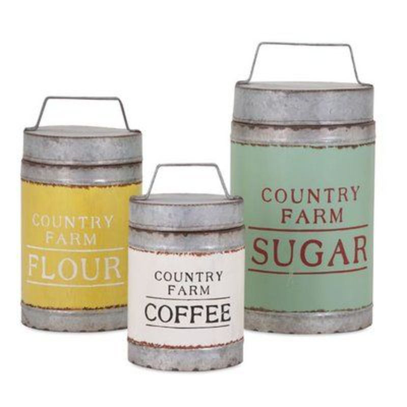 Ensemble de 3 récipients de conservation alimentaire galvanisés de différentes tailles, design créatif, ustensiles de cuisine et de table très demandés