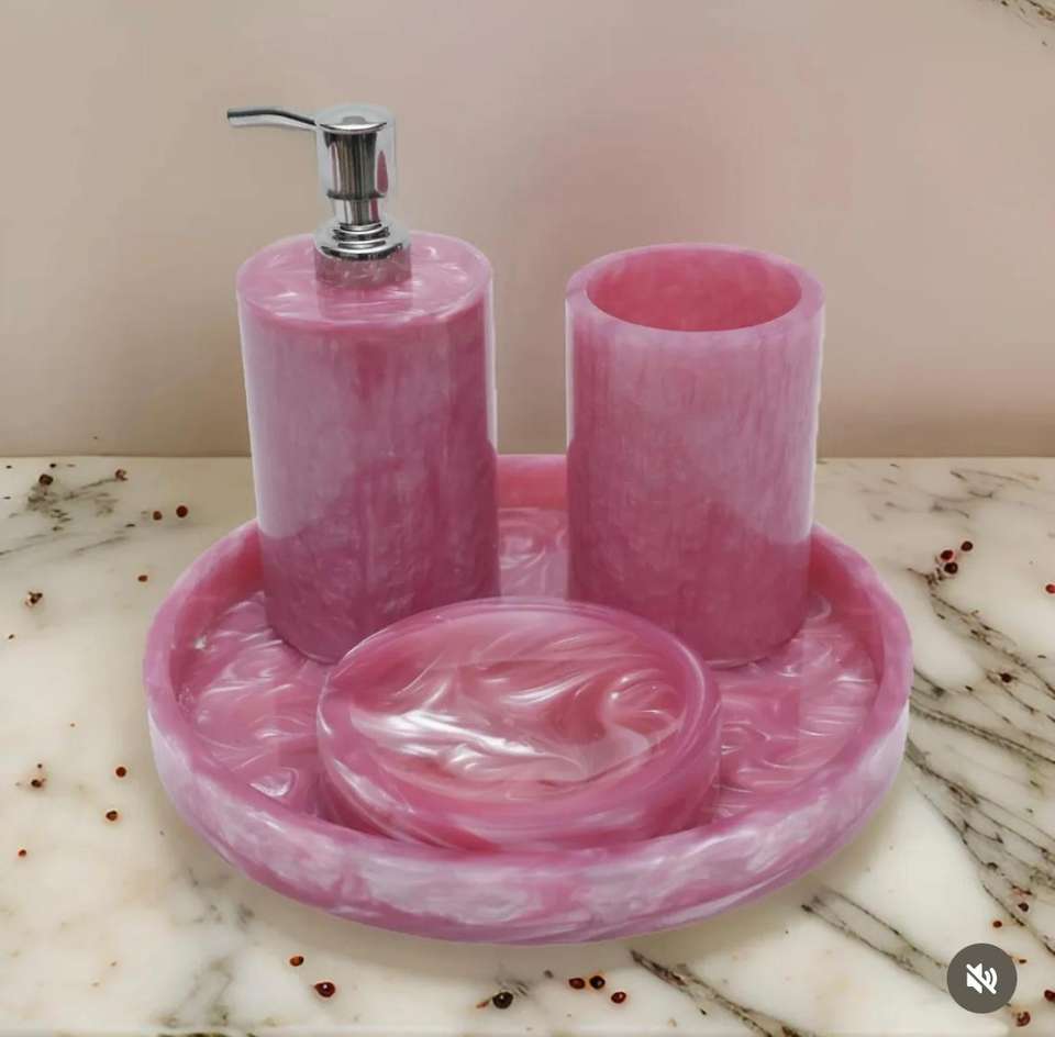 Ensemble d'accessoires de salle de bain en résine époxy au design créatif, ensemble de vanité de luxe, organisateur de décoration intérieure pour la maison, au meilleur prix