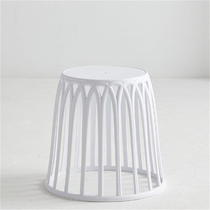 Tabouret de thé rond en plastique empilable et portable au design créatif et moderne, idéal pour les petits appartements, les coins de chambre et les jardins extérieurs.
