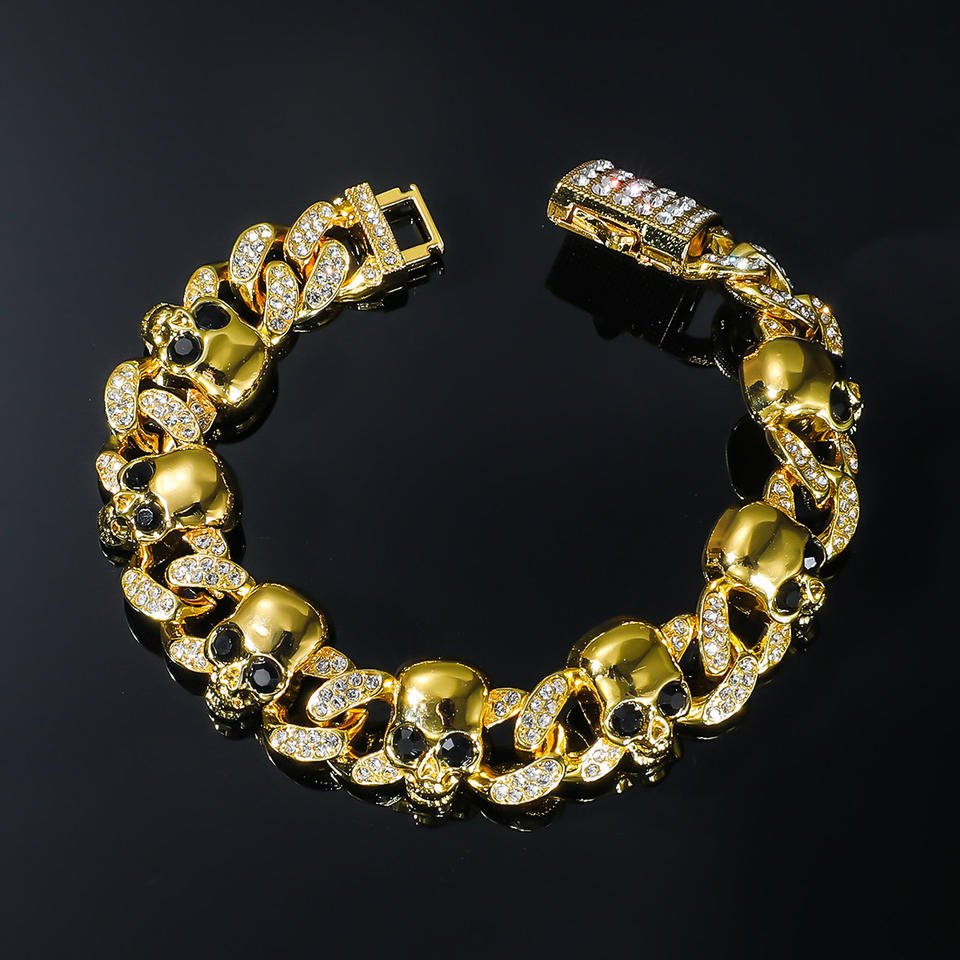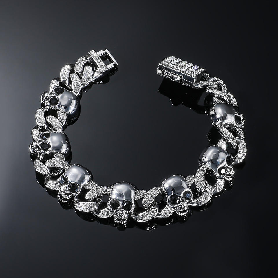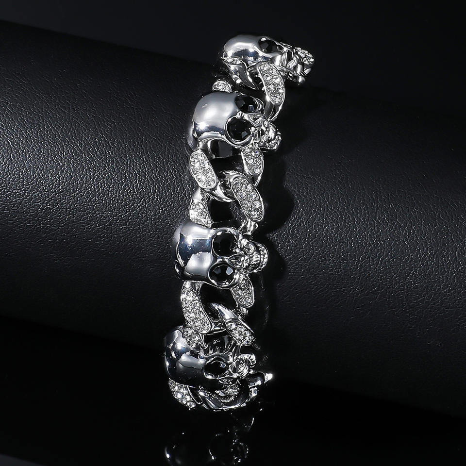 Bracelet Chaîne Tendance Style Punk Personnalisé avec Tête de Mort Géométrique – Bijou Cool pour Homme – Design Créatif