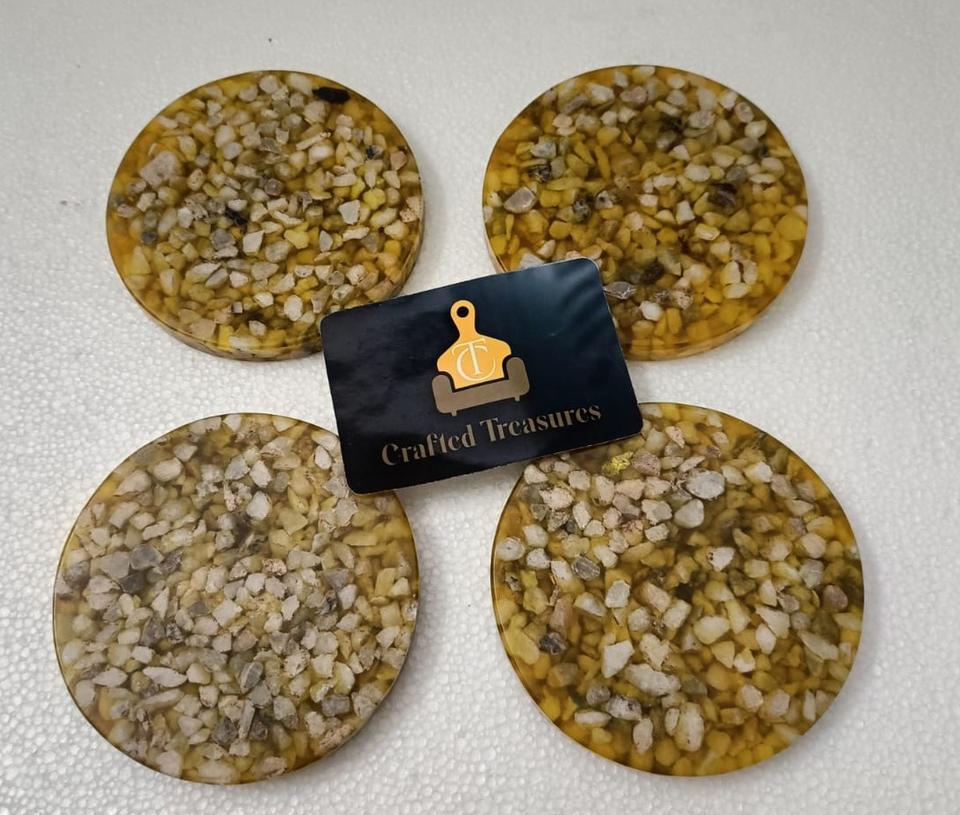 Ensemble de dessous-de-verre créatifs en pierre naturelle incrustée de résine époxy, tapis et coussinets en mosaïque ambrée, vaisselle, dessous-de-verre en terrazzo