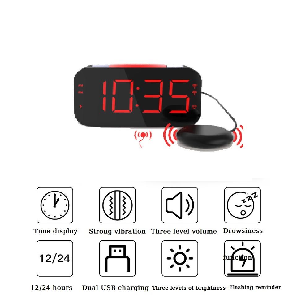 Product name:Multifunctional led digital clock vibration 2USB charging alarm clock