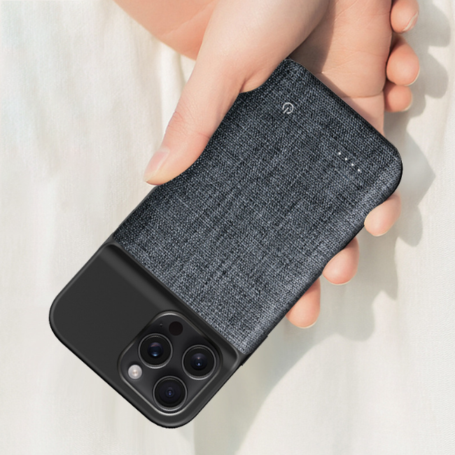 Conception créative de chargeur de clip arrière chargeur sans fil en tissu Oxford en plastique souple pour iphone 15 pro étui de charge de téléphone portable