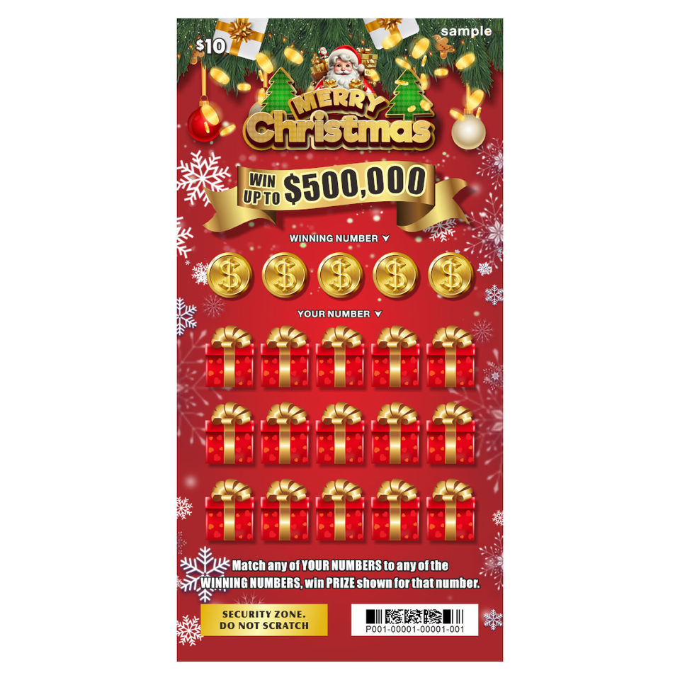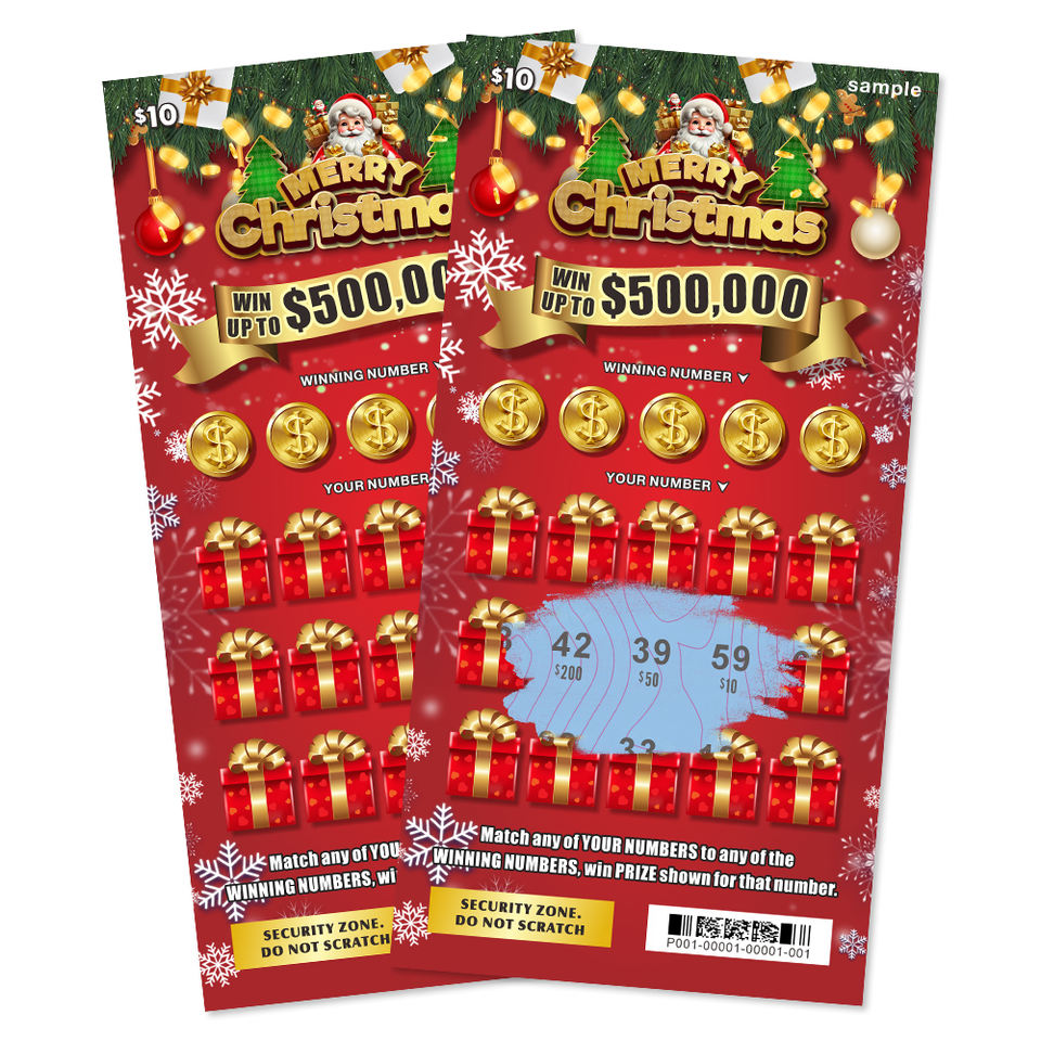 Modèles créatifs de jackpot de Noël Taille du billet Logo Papier Carte de loterie entièrement personnalisée