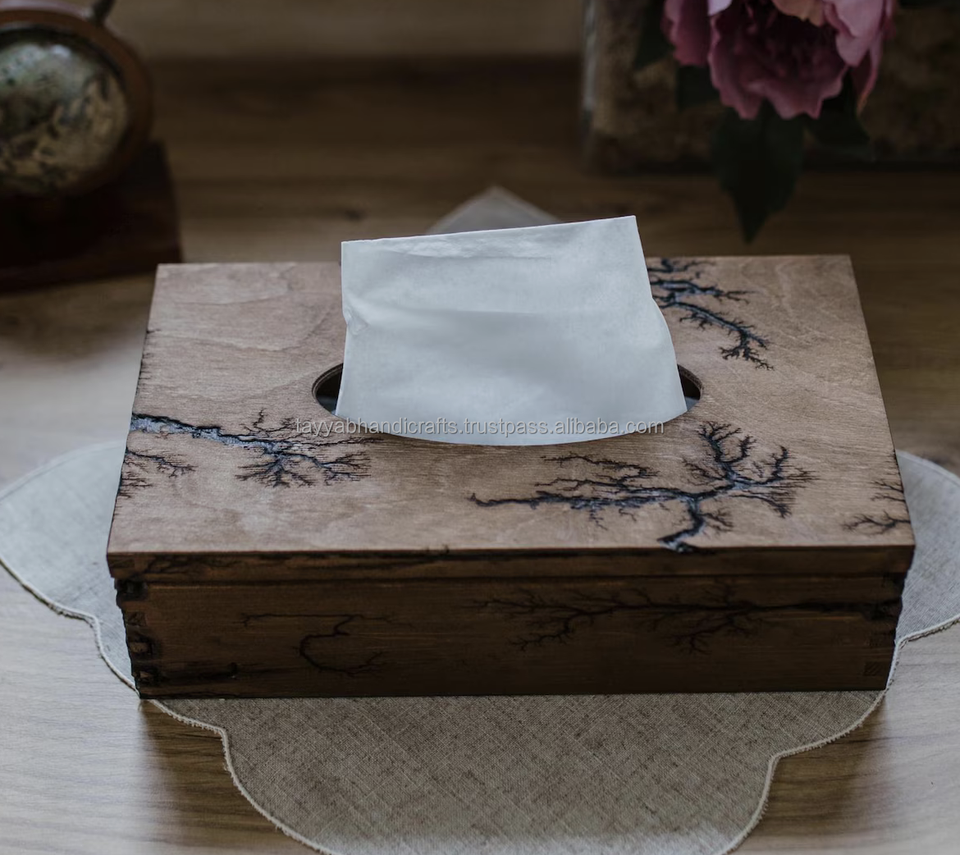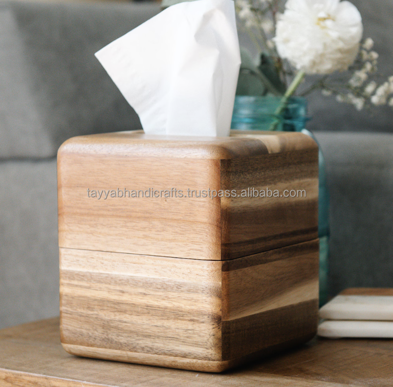 Boîte à mouchoirs de fond en bambou en bois de bureau créative boîte de rangement de serviette simple domestique d'Inde