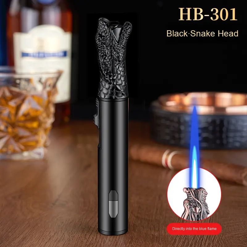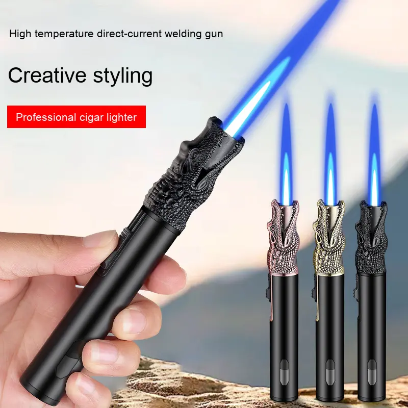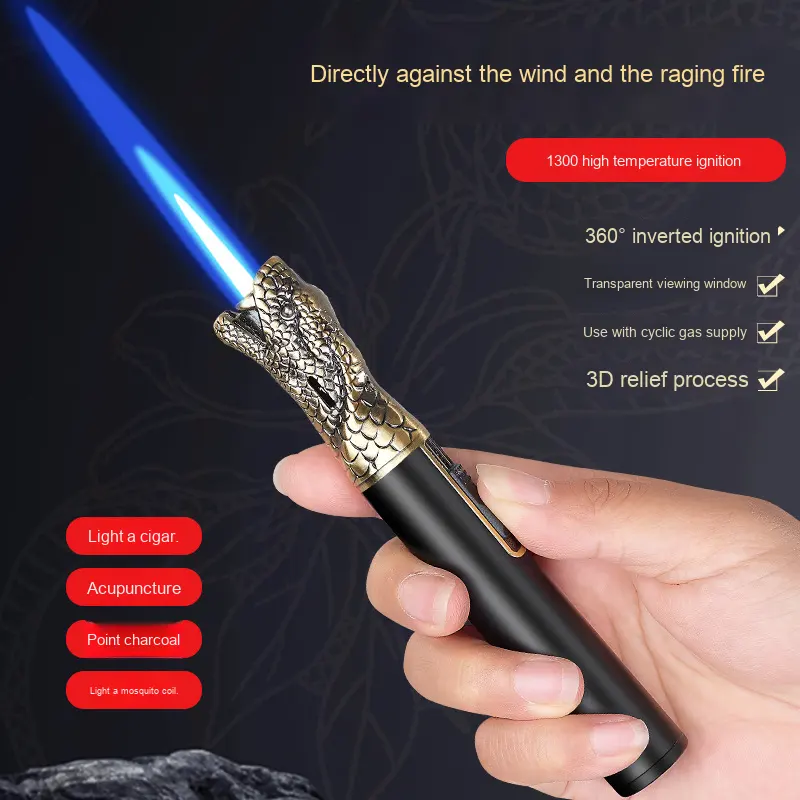 Briquet d'allumage en métal coupe-vent direct créatif Conception de pistolet de pulvérisation à soulagement tridimensionnel pour la moxibustion de cigares de fête