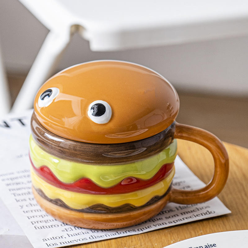 Tasse à hamburger en céramique de grande capacité créative et écologique avec couvercle mignon amusant tasse de petit déjeuner isolée froide et chaude pour la fête pour le lait