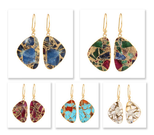 Boucles d'oreilles pendantes en forme de fantaisie, mode créative Mohave, saphir, cuivre, Turquoise, goutte, plaqué or 24k, crochet de fil d'oreille