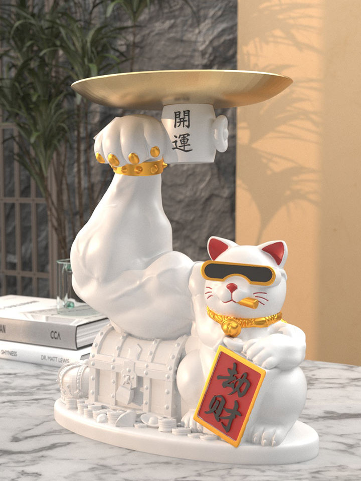 Plateau de rangement en résine style art pop créatif, motif Kirin et chat porte-bonheur, décoration de bureau, cadeau de fête