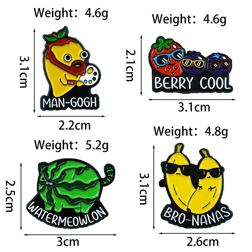 Broches créatives sur le thème des fruits, motifs amusants de dessins animés (pastèque, cochon, mangue et peintre), accessoires en émail polyvalents