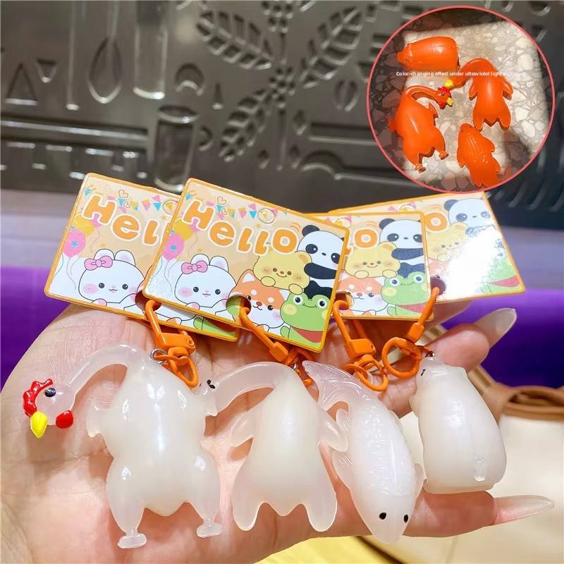 Porte-clés créatif amusant à changement de couleur UV, dessin animé, poulet rôti, canard, cochon