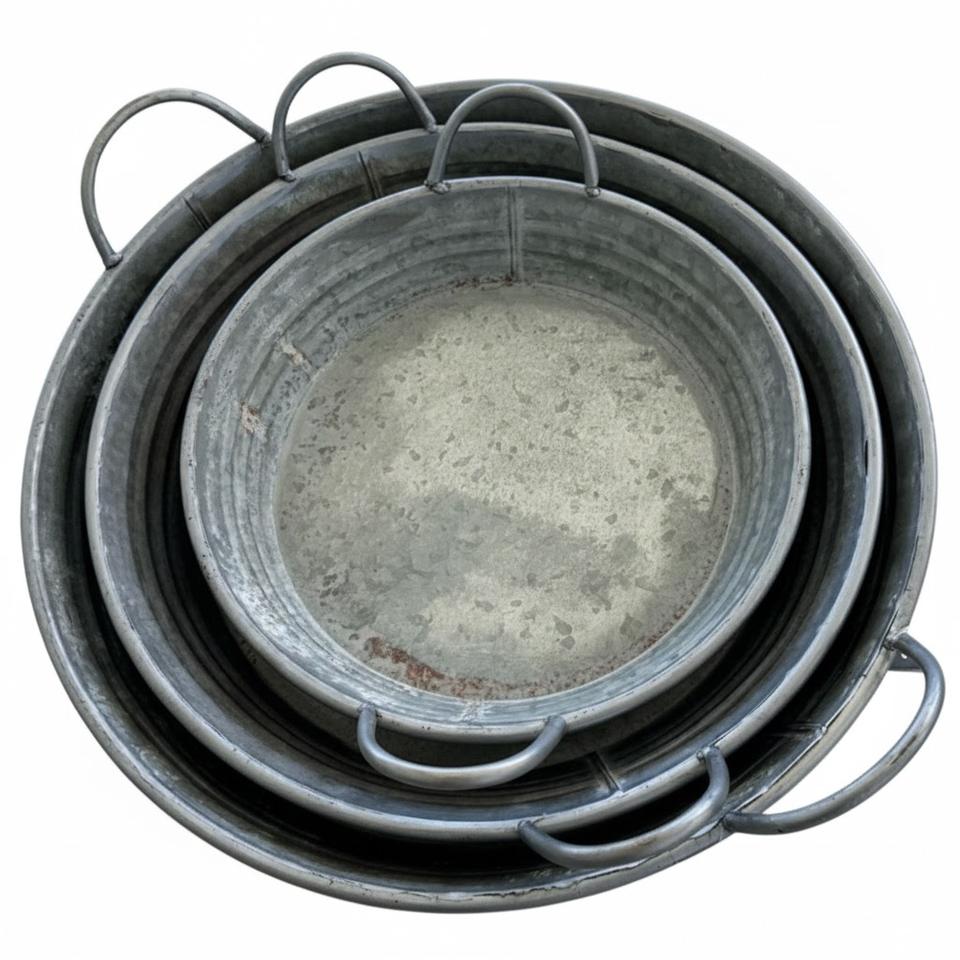Plateau de service ovale en métal galvanisé créatif avec poignées en corde, style ferme vintage, bac de rangement décoratif en zinc plaqué, en promotion