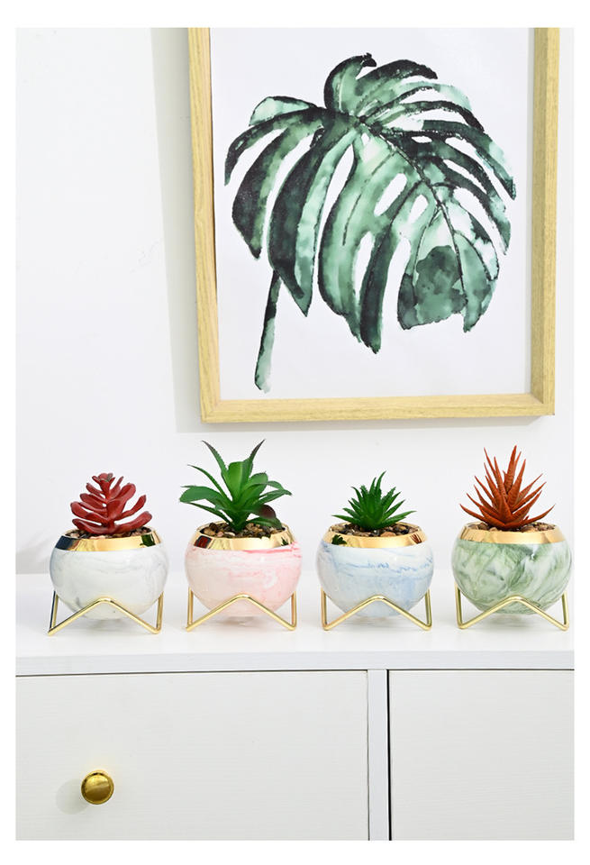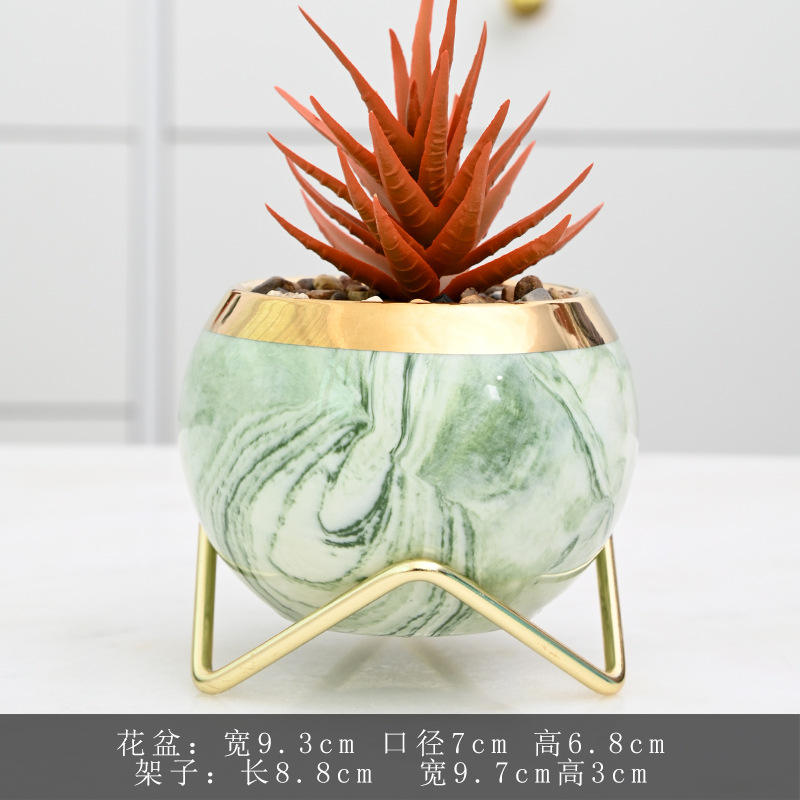 Pot de plantes succulentes de jardin créatif Mini céramique Cactus plante Pots de fleurs support en métal motif Faux marbre décoration de sol de bureau