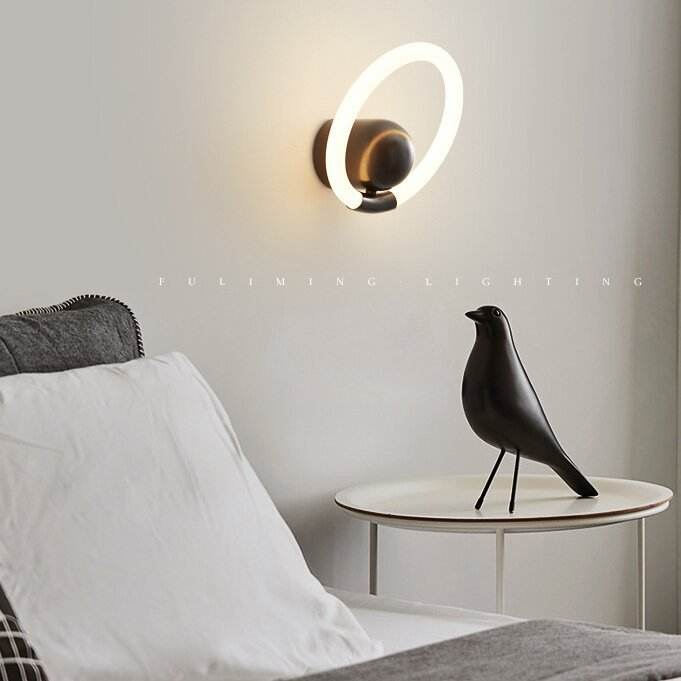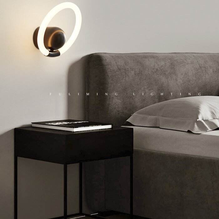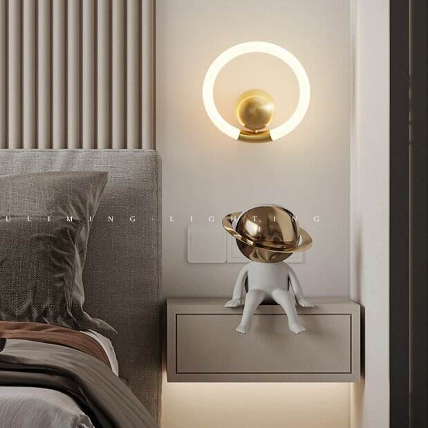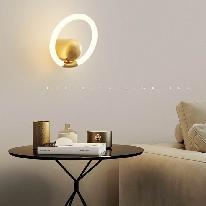 Lampe murale en laiton illuminée à 360° avec un design géométrique créatif, avec un tube lumineux en acrylique LED pour salon, chambre à coucher, chevet