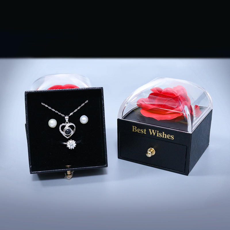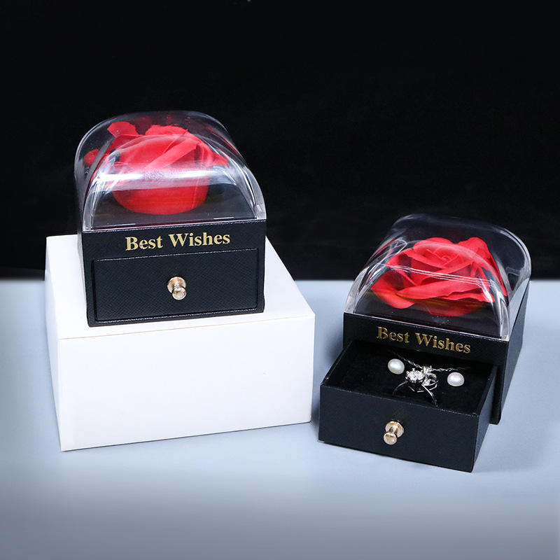 Boîte à bijoux créative en carton en forme de mini rose faite à la main, emballage pour montre, fleur éternelle, savon, ornement, collier, boîte cadeau