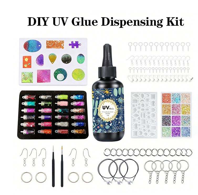 Kit de Bijoux Créatifs Faits Main en Résine UV, Époxy Transparent Dur à Durcissement Rapide, Moules en Silicone pour Pendentifs, Boucles d'Oreilles, Porte-clés et Feuilles Métalliques