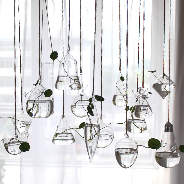 Vase en verre transparent suspendu créatif, petit vase suspendu pour la culture intérieure, décoration de la maison, bouteille pour plantes