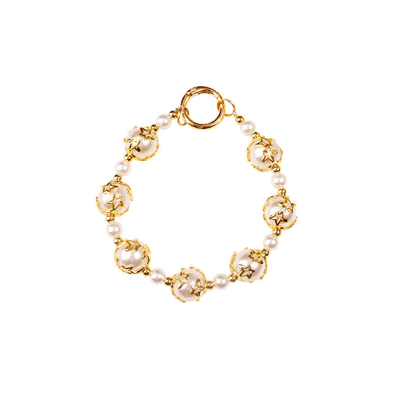 Porte-clés créatif haut de gamme en résine de style Ins avec chaîne ronde en forme d'étoile pour téléphone, avec pendentif en perles pour dragonne