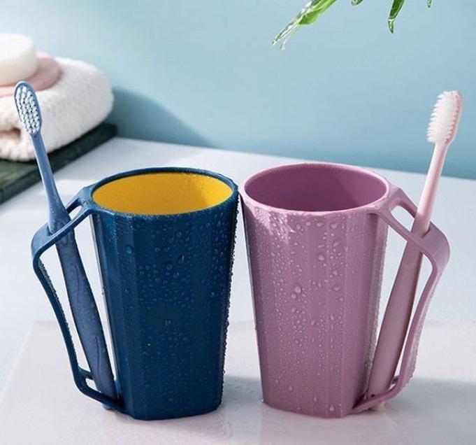 Tasse de gargarisme créative avec poignée Bicolore Famille Étudiant Dortoir Tasse de toilette Couple Voyage Brushing Cup