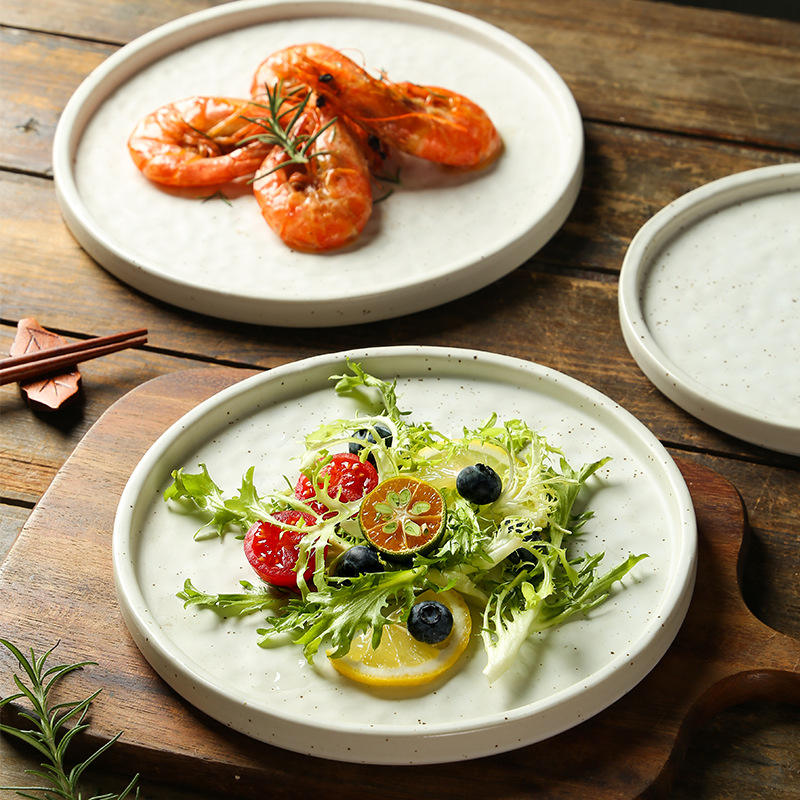 Assiettes à steak en céramique pour pâtes et pizza, plateau plat en pierre simple, cuisine japonaise créative pour restaurant à la maison