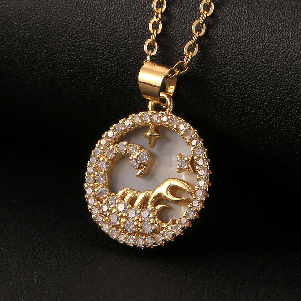 Nom du produit:Pendentif Coquillage Zircon Astrologie - Collier Signe du Zodiaque