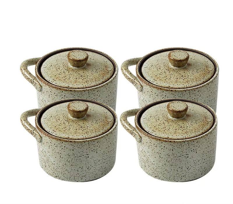 Pot d'assaisonnement ménager créatif Pot à ragoût rugueux Soupe aux oeufs à la vapeur Pot en céramique avec couvercle Bol à soupe Pot à épices pour la cuisine