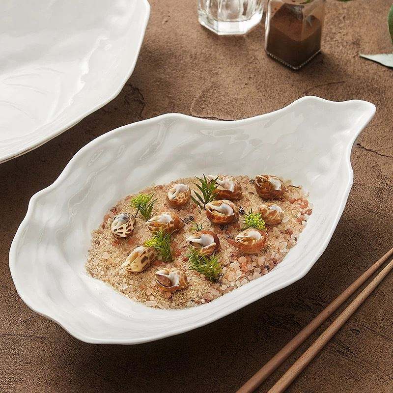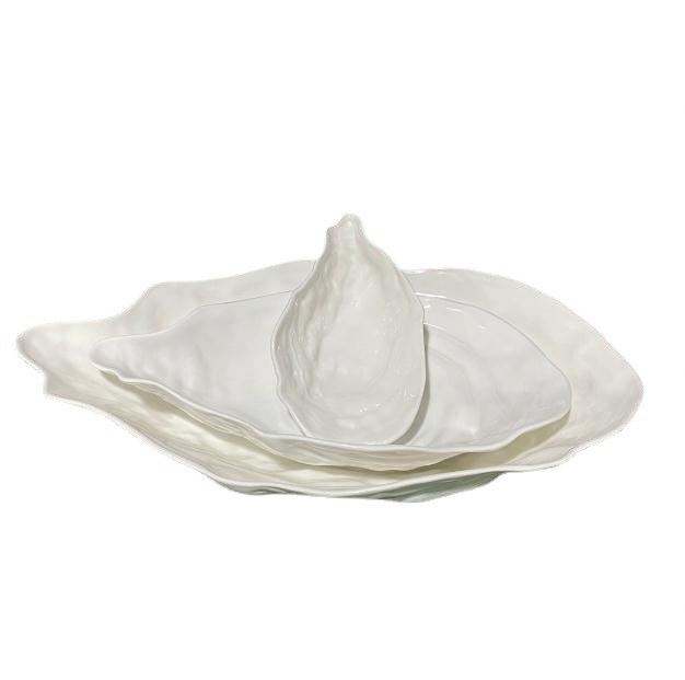 Assiette à salade en forme de coquille d'huître en céramique blanche pure pour restaurant, vaisselle créative pour hôtel Japandi