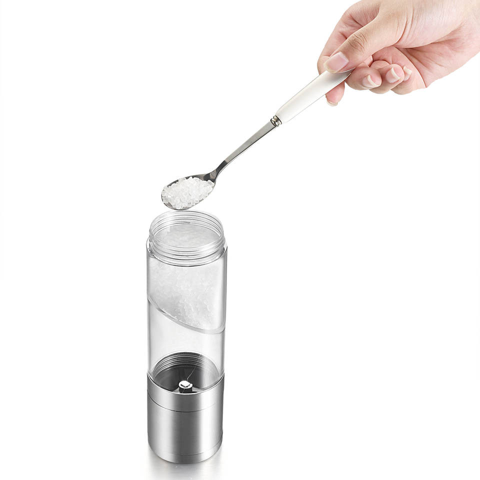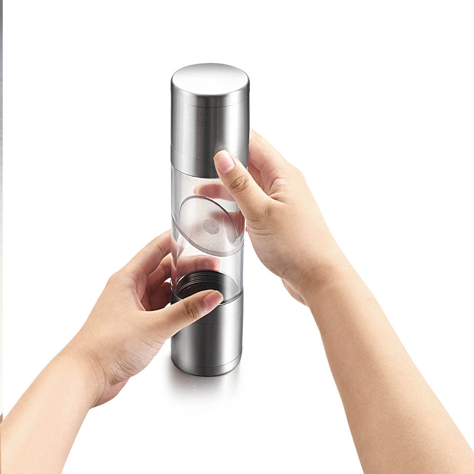 Gadget de cuisine créatif 2 en 1, moulin à poivre et à sel, cylindre en acier inoxydable détachable, transparent, pour la cuisine