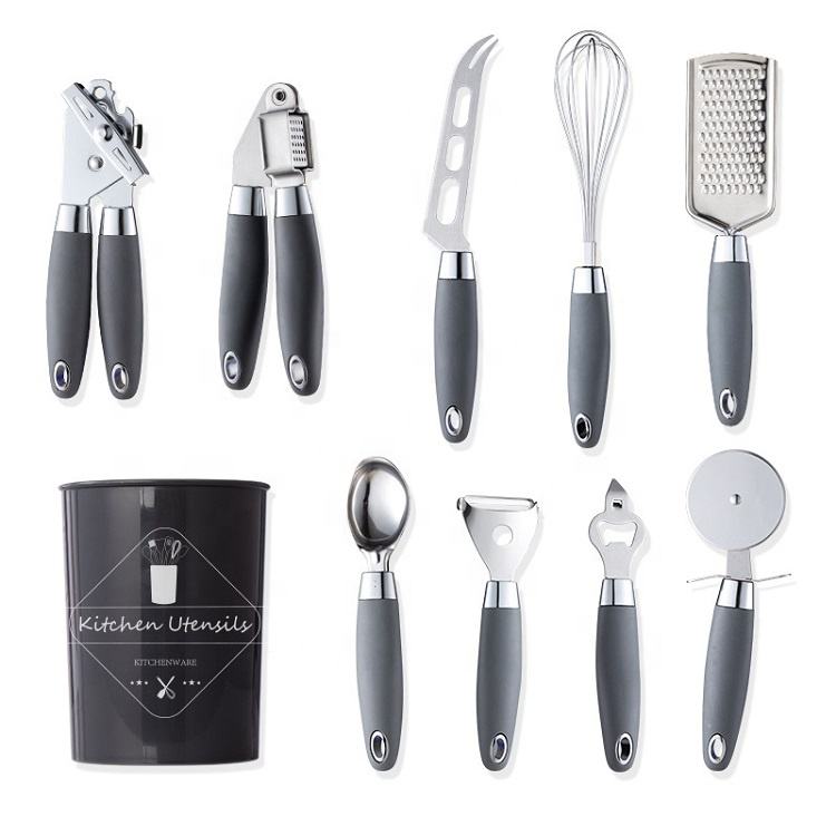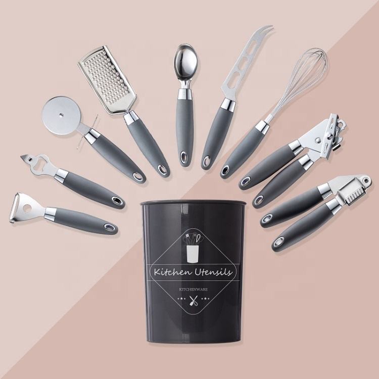 Ensemble d'outils de cuisine créatifs, en acier inoxydable, couleur grise, presse-ail, râpe, cuillère à crème glacée, ensemble d'ustensiles de cuisine, 10 pièces