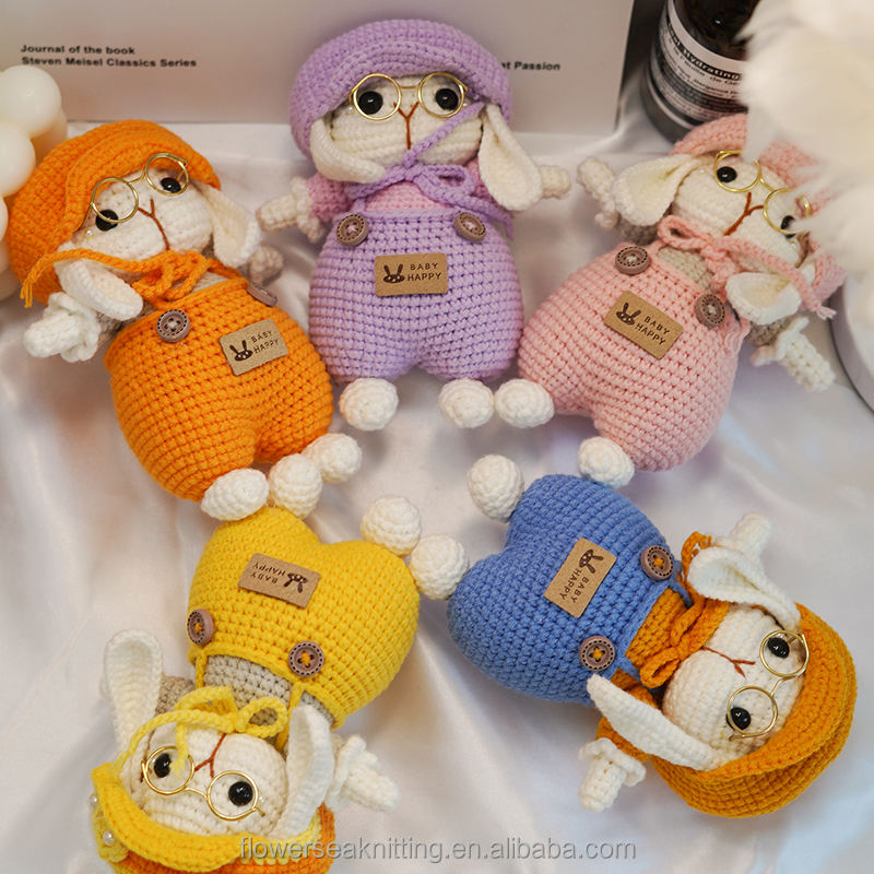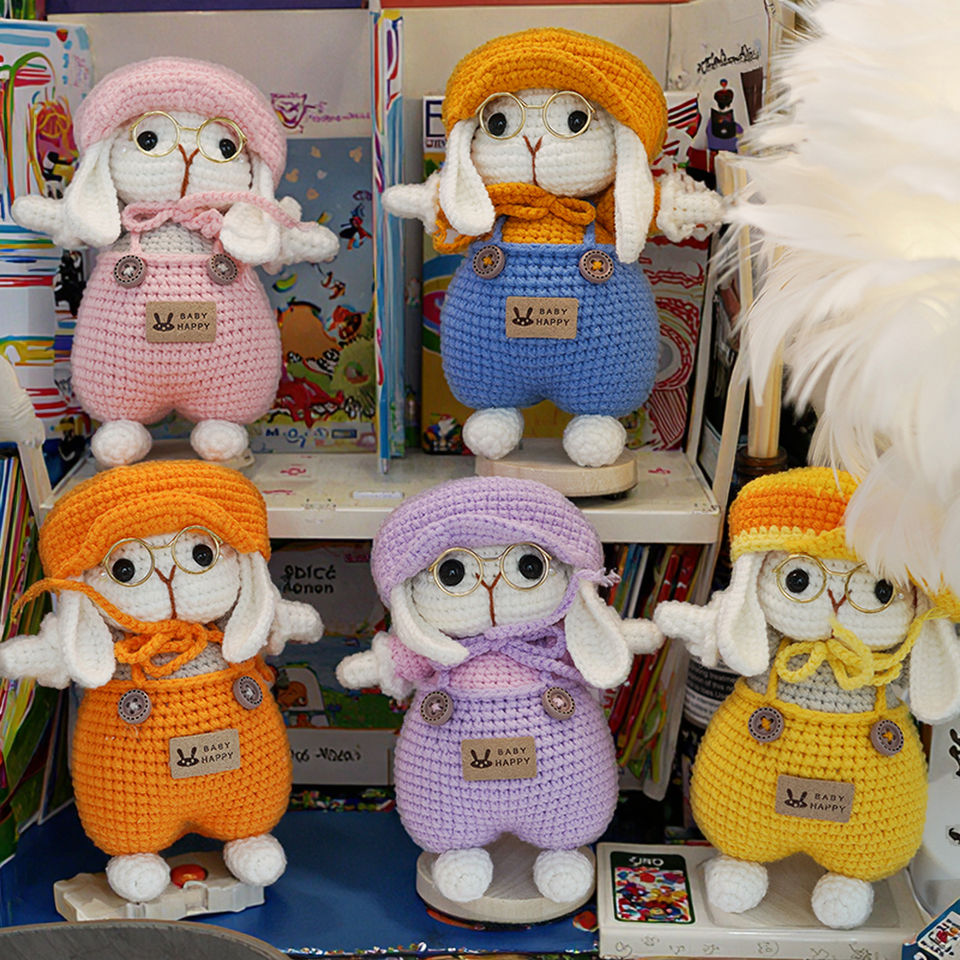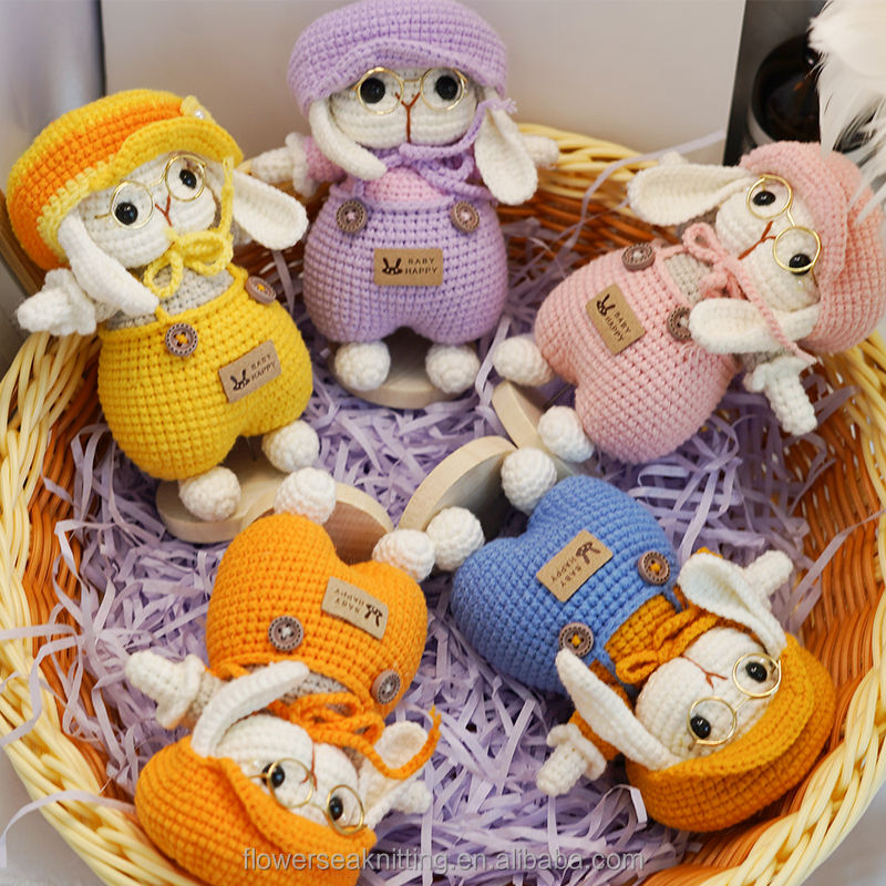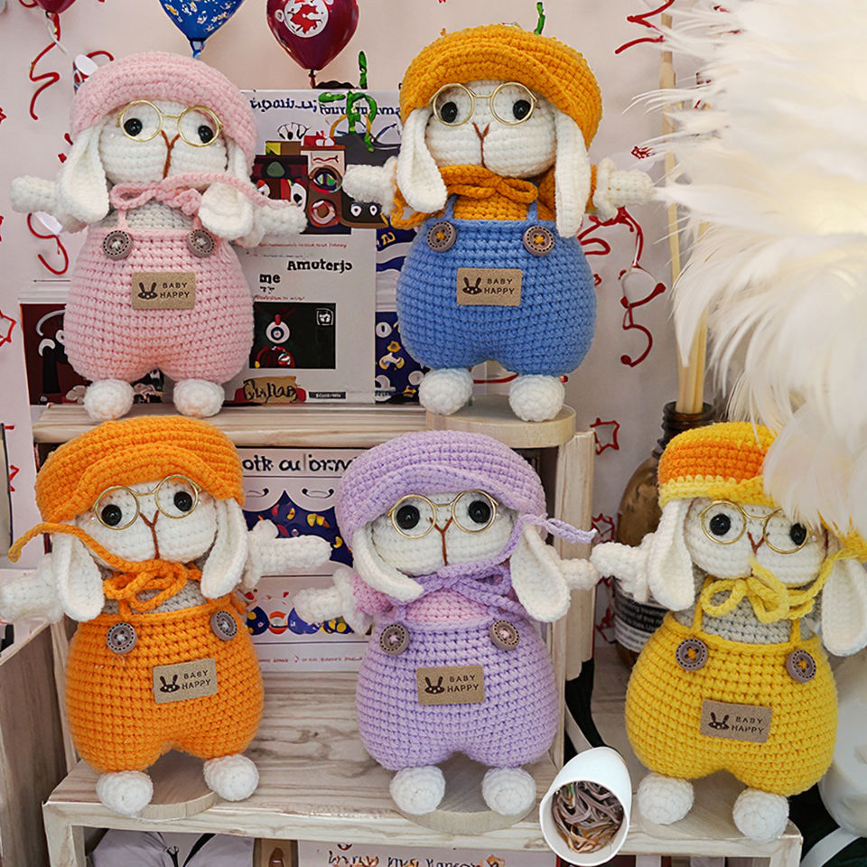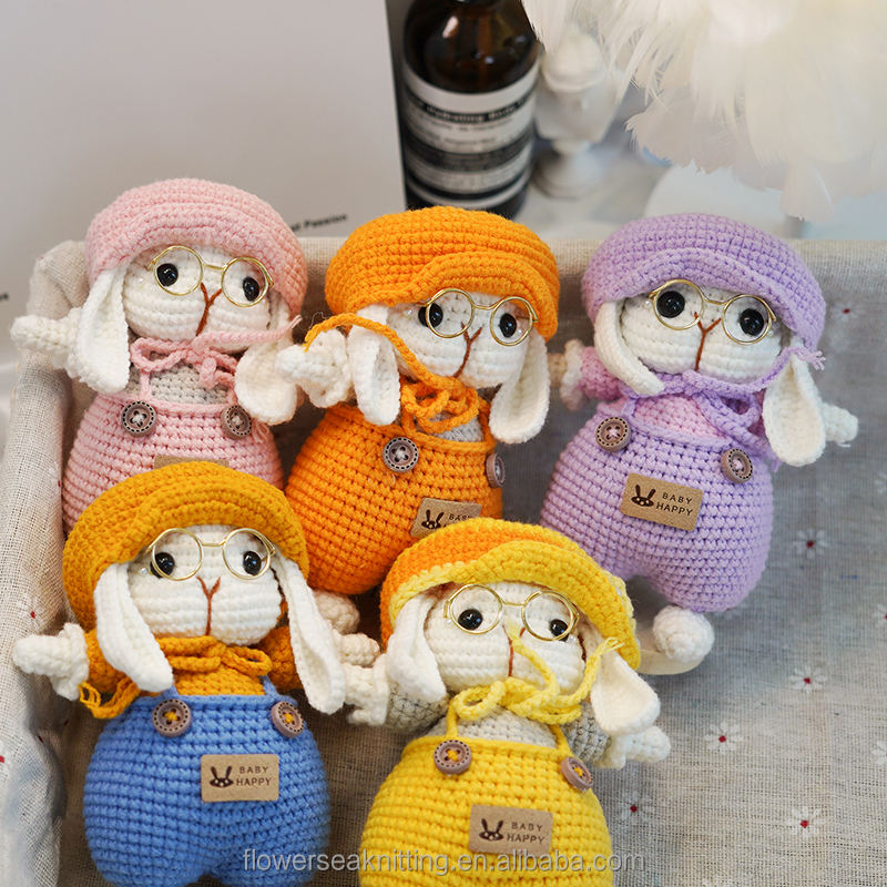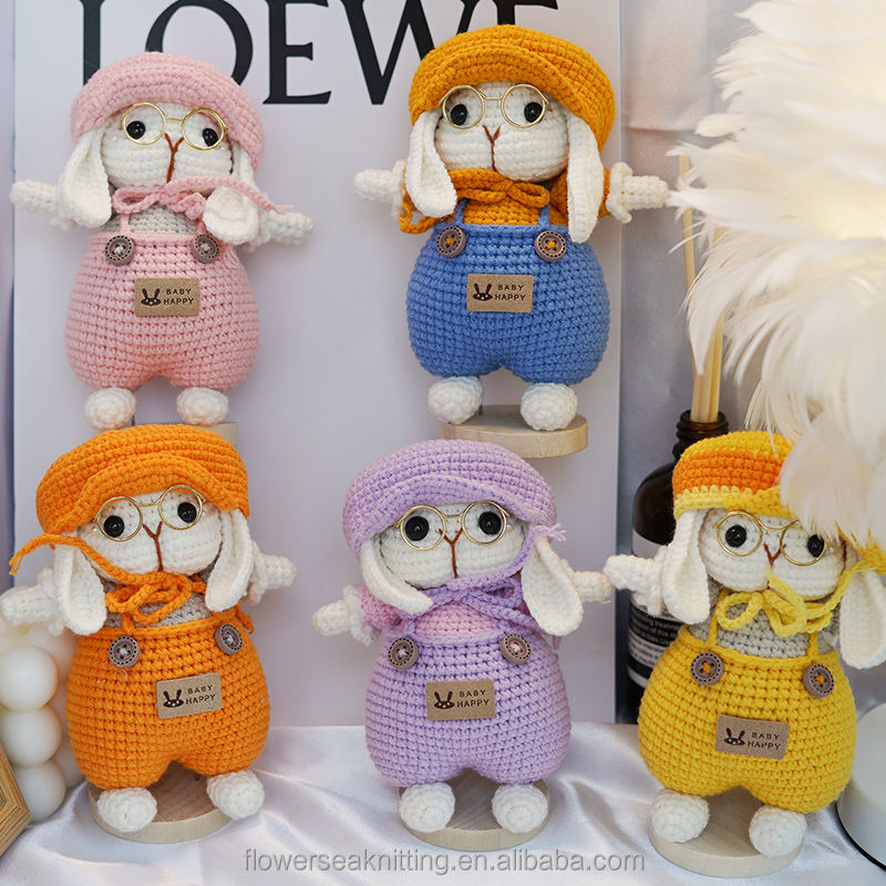 Bérets tricotés créatifs poupée lapin bérets en diamant avec lunettes à cadre rond matériau respectueux de la peau pour les cadeaux d'art