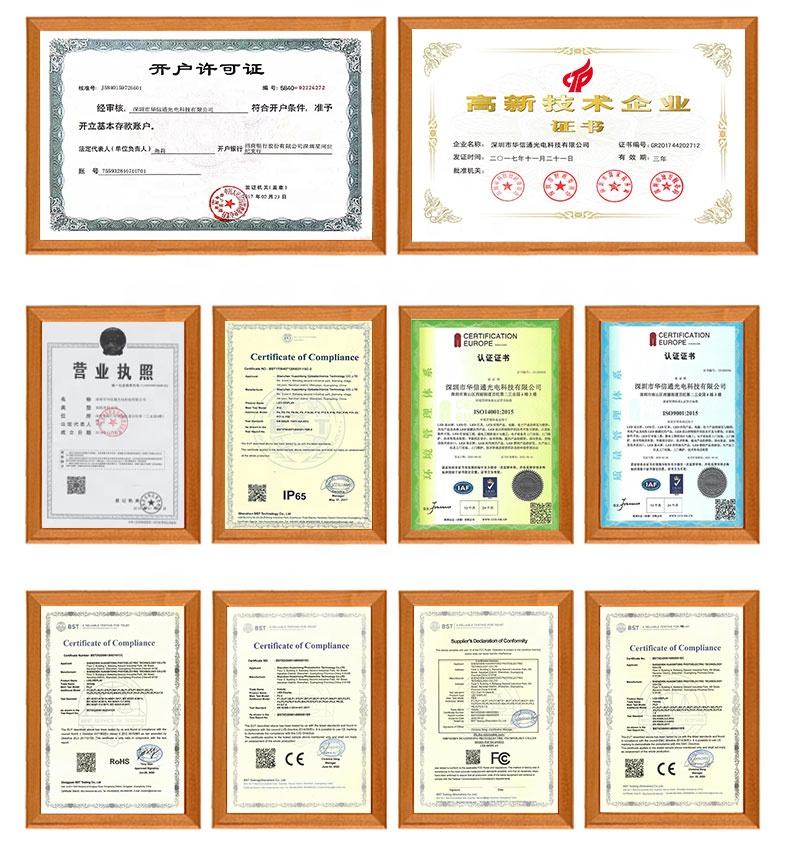 Certificat:FCC CE RoHS ISO IP65 RCM
