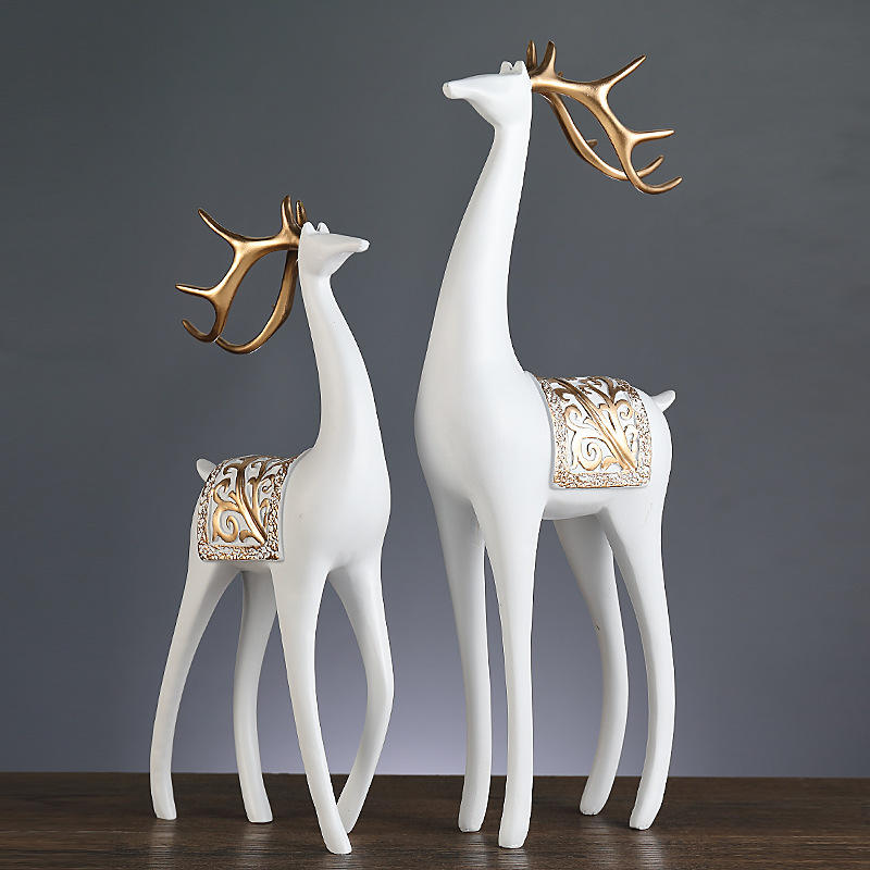Creative Light Luxury High-End Epoxy Resin Deer Figurines Folk Art Home Decor for Living Room Study Holiday Decoration