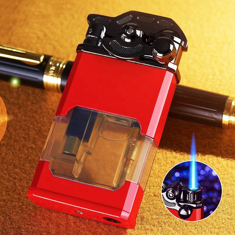 Briquets créatifs, réservoir de gaz transparent, briquet torche à flamme bleue coupe-vent personnel